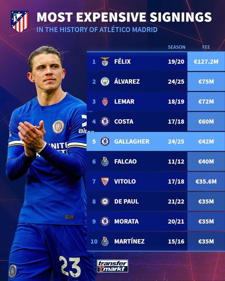 增加了加拉格尔这个引援之后,2024-2025赛季,马德里竞技队史引援转会费排行前三分别是本菲卡的菲利克斯、曼城的阿尔瓦雷斯和摩纳哥的勒马尔。这三位球员的强力加盟为马德里竞技的进攻体系带来了革命性影响,也让球队在联赛和杯赛中取得了不俗的成绩。下一个赛季,球迷们期待着加拉格尔能够为球队带来新的惊喜,为球队赢得更多荣誉。