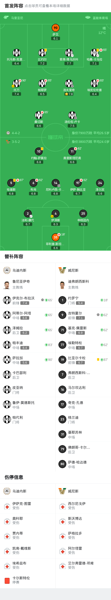 乌迪内斯的洛伦佐-卢卡、洛夫里奇和伊克尔-布拉沃等球员在比赛中展现出了出色的发挥,他们的进球为球队带来了胜利。同时,哈桑-卡马拉和索莱-博马沃科等球员的助攻功不可没,他们的团队配合为乌迪内斯取得了这场关键胜利。在比赛中,乌迪内斯展现了出色的团队合作精神和战术配合,他们的防守和进攻都显得非常有序和有力。这支球队展现了顶级联赛球队应有的实力和技术水平,为球迷们带来了一场难忘的比赛。